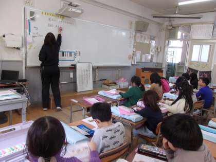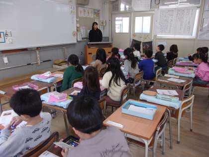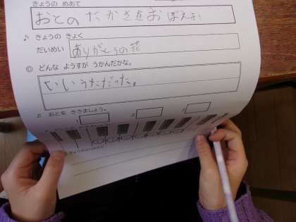 1月30日 音楽で「ありがとうの花」を聞き感想を書きました。その後、みんなで歌いました。