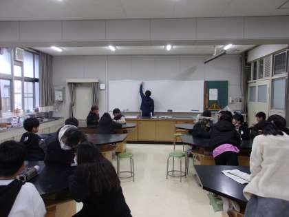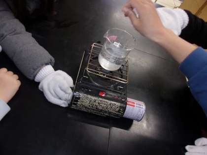 2月5日 理科で「ものの温まり方」について学習しています。前回、金属の温まり方でした。今日は水について実験・観察をしました。水が温まる様子をじっくりと見ることは日常生活ではあまり無いと思われます。子どもたちは、温められた底の方から水のすつぶやもやもやとしたものが上がっていく様子を観察することができました。