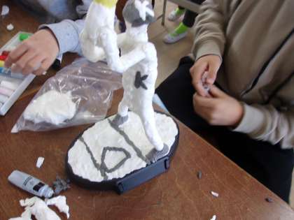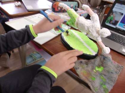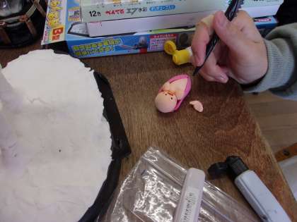 3月7日 図工で12年後の自分というテーマで作品をつくっています。野球やサッカーの選手、保育士、プログラマーなど人それぞれの12年後を表現しました。