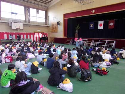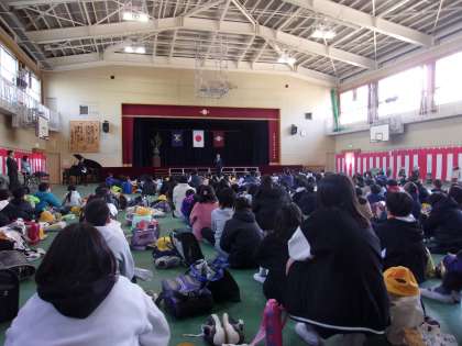 3月21日 修了式がありました。春休みの過ごし方を聴いたり、1年生のがんばったことの発表を聴いたりしました。最後に校歌を歌いました。1年間よくがんばりました。春休み、元気に安全に過ごしてほしいです。