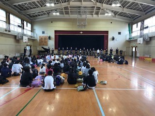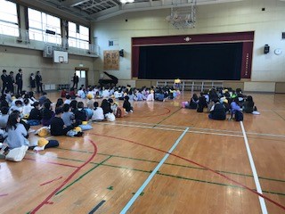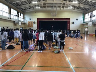 4月8日 2024年度が始まりました。着任式で新たに8名の教職員を紹介しました。始業式では、2年生が、がんばりたいことについて発表しました。担任発表をした後、校歌を歌いました。気持ち新たにがんばっていきましょう。