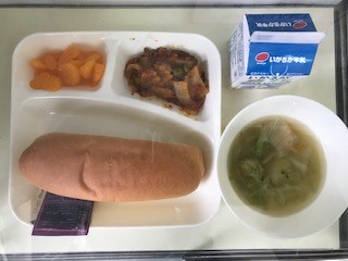 じゃがいものミートグラタン、レタスのスープ、みかんです。