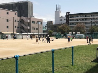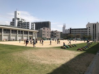 少し暑いですが、子どもたちは元気に運動場で遊んでいます。