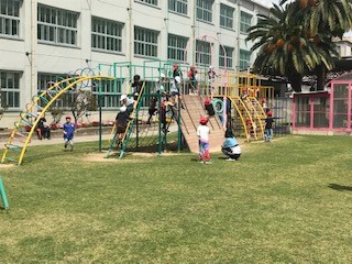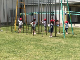 1年生の皆さんが、遊具で遊んでいます。 とても楽しそうです。