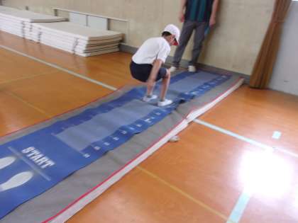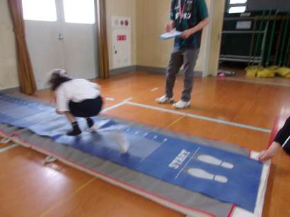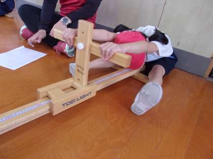 5月8日 体育でスポーツテストをしています。今日は、長座体前屈と立ち幅跳びを測定しました。