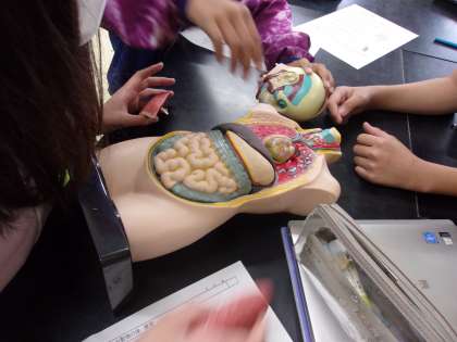 5月31日 理科で人の体について学習しています。人体模型の内臓を外して、どの臓器がどこにあるのか確認しました。