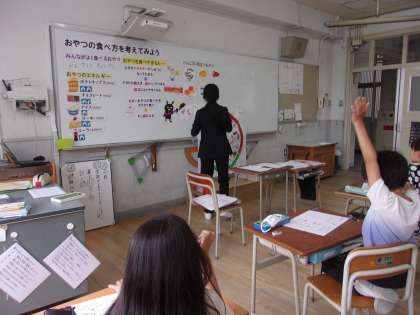 6月5日 食育の授業がありました。4年生が「おやつの食べ方を考えてみよう」、5年生が「コツコツとろうカルシウム!」という題で授業を受けました。