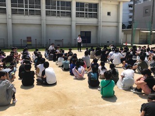 6月7日 不審者が学校に入ってきた場合を想定して避難訓練をしました。もしもに備えてしっかり放送や先生の指示を聞くことを確認しました。
