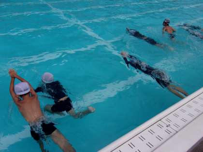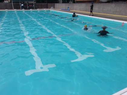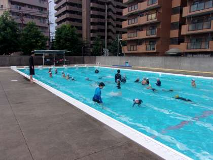 7月17日 水泳の学習をしました。けのびで進めるだけ進む練習をしました。