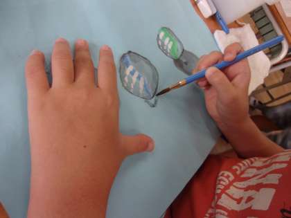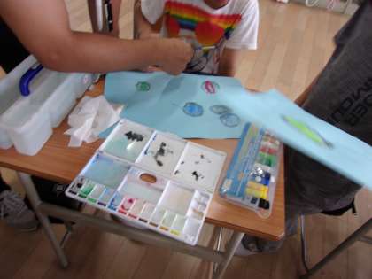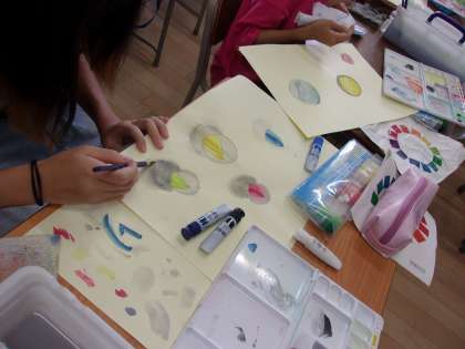 9月10日 図工でビー玉を描き、着色しました。球のかげを描き立体的に見えるように工夫しました、