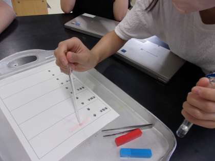 9月12日 理科で水溶液の性質のグループ分けをしました。リトマス紙を使って判別し、中性・酸性・アルカリ性に分けました。