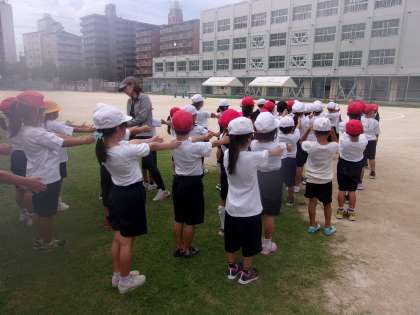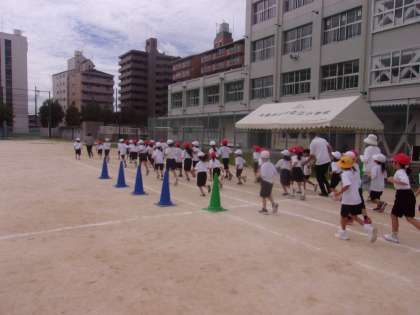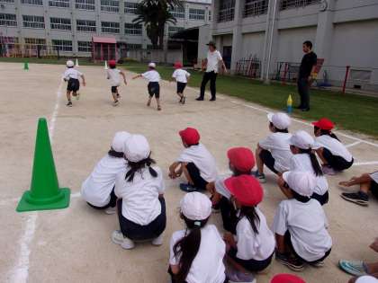 9月19日 体育で走る練習をしました。スタート地点に向かうまでの集団行動や走り終わった後の待ち方を練習しました。