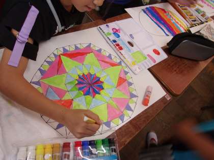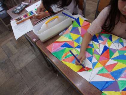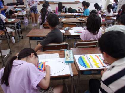 9月25日 図工で「ふしぎなたまご」という題で絵を描いています。カラフルな卵から何かが飛び出るように描きます。