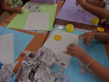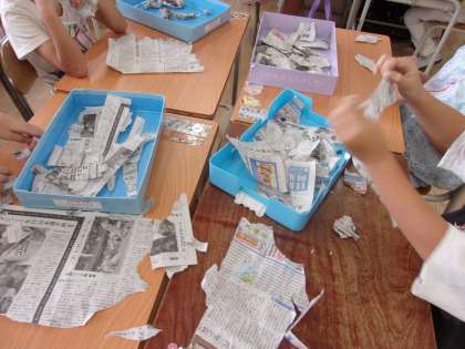 9月25日 新聞紙を破った形が何に見えるか想像して作品を作ります。