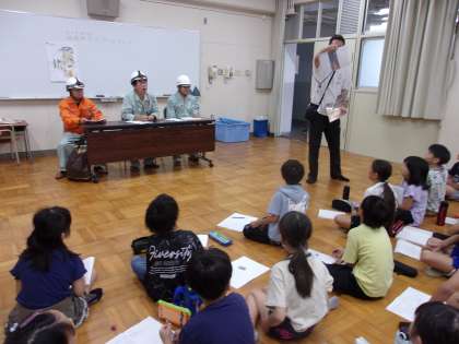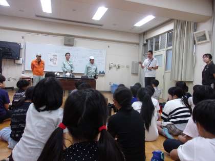 10月3日 社会で地域の防災について学習しています。今日は、住之江の地域防災リーダーの方に来校していただき、どのような活動をしているのか教えていただきました。こどもたちには地域の活動に興味を持ち、何かできることを考えてほしいと思っています。