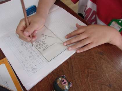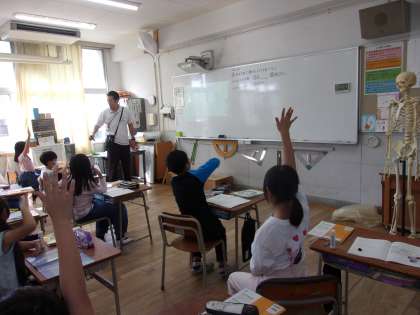 10月21日 理科で人の体のつくりと運動という学習をしています。手の関節がどこにあるのか、曲がる部分を自分で確認しながらプリントに書き込みました。
