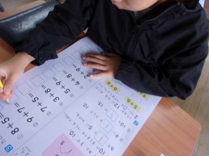 10月30日 算数のテストをしました。足して10を超えるくりあがりのある足し算が範囲でした。