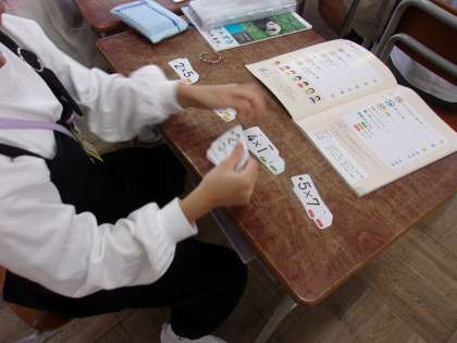11月1日 かけ算九九の復習をしました。九九カードをばらして、ゲーム形式で復習しました。