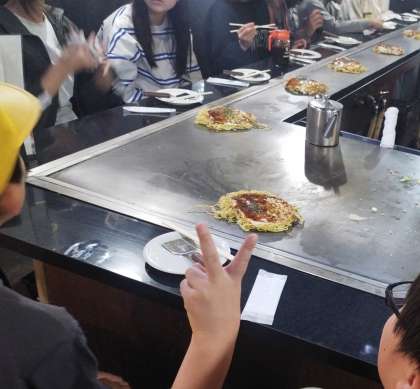 広島につきました。昼食にお好み焼きをいただきました。そばのある広島焼きでした。