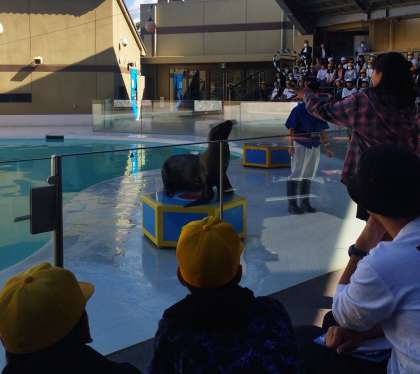 宮島水族館でアシカショーを見ました。アシカの動きに驚きの連続でした。