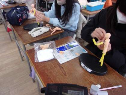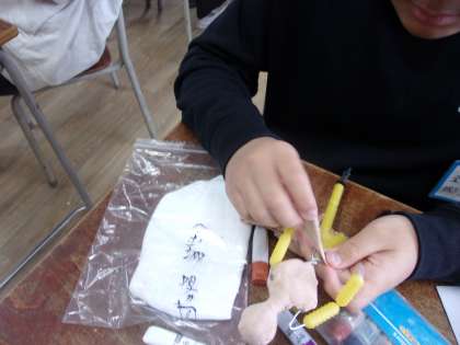1月16日 図工で芯材を使った粘土工作をしています。将来の自分をテーマに作ります。