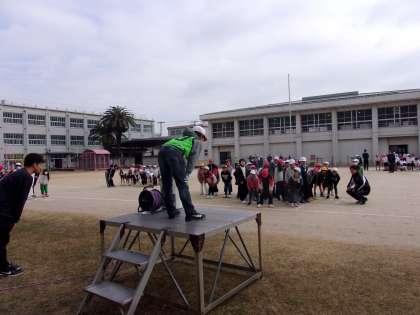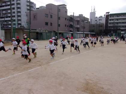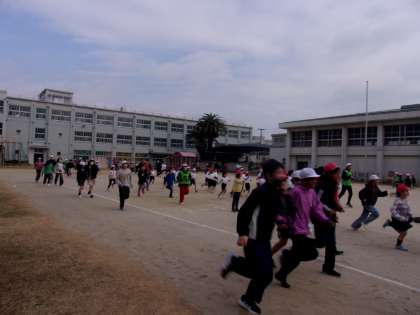 1月20日 3学期の体力向上の取り組みとして1月3週目は「ランランタイム」を行います。全校児童が運動場を約4分走ります。