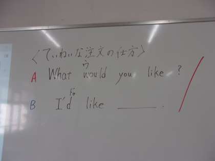 1月21日 英語で「ていねいな注文のし方」と「値段の聞き方」について学習しました。英語を聞いてどのような内容か教科書に書きました。