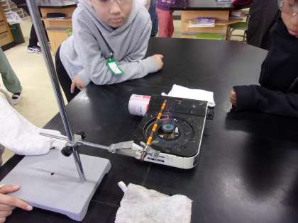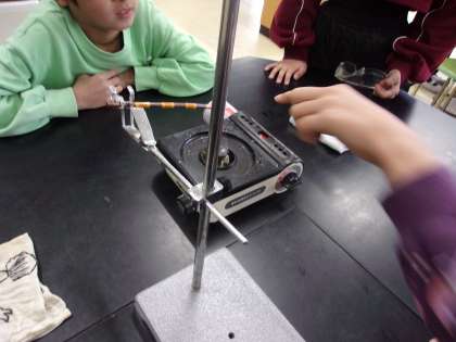 1月22日 理科でものの温まり方について学習します。まずは金属の温まり方を調べました。