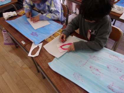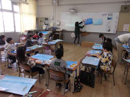 2月5日 図工で海で泳いでいる魚の絵を描きました。国語で学習した「スイミー」を思い出しながら描きました。