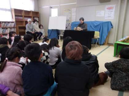 2月6日 2年生が絵本や組木で読み聞かせをしてもらいました。珍しい組木で桃太郎を聞かせてもらいました。楽しい時間でした。ぴよぴよのみなさまありがとうございました。