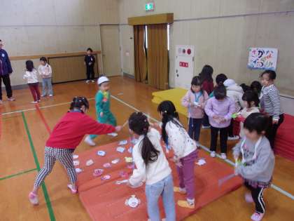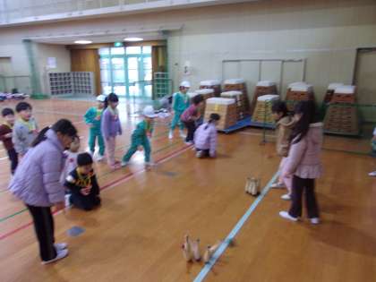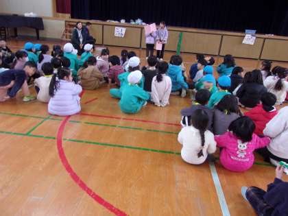 2月12日 1年が近隣の幼稚園と保育園を招き、あそびフェスティバルを行いました。1年生のこどもたちは、幼稚園、保育園のこどもたちにやさしく遊び方を教えていました。