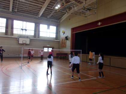 2月17日 体育でバレーボールをしました。できるだけプレーが続くようにすることを目的に試合をしました。
