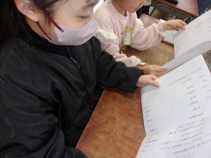 3月4日 国語で、表現力を高めることを目的にして教育漫才をします。今日は、どんなセリフを話すのかペアの人と相談しました。