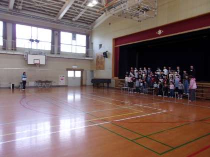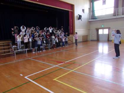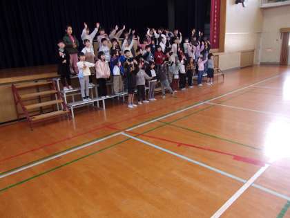 3月6日 今の1年生は、4月の入学式の時に新2年生として、次の1年生にお迎えのための演技をします。そのための練習をしました。元気に歌いました。