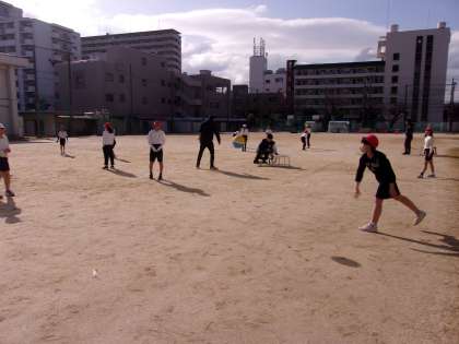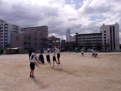 3月7日 体育でポートボールをしました。仲間にボールをまわしてうまくパスまでもっておけるようにチームで考えながら動きました。