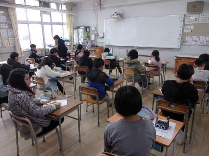 3月11日 図工で木工作品を作りました。自分の作品について解説を書き、みんなで見て回りました。