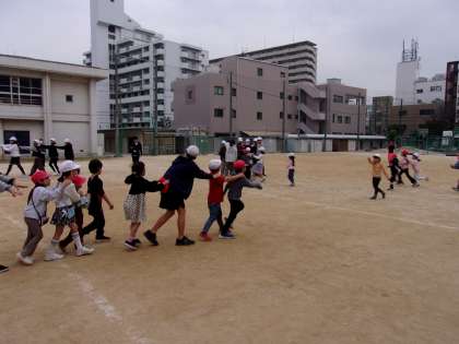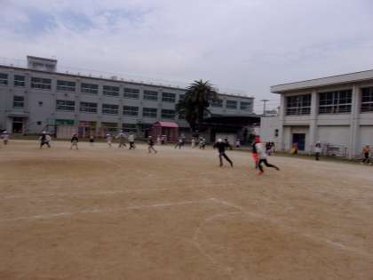 3月13日 6年生は来週いよいよ卒業です。たてわり班活動で知り合った1年生と6年生がさいごの交流をしました。じゃんけん列車、おにごっこ、ドッジボールをして楽しみました。