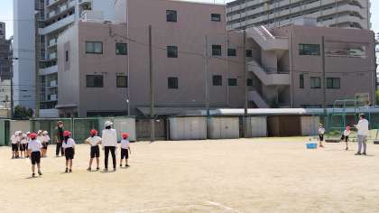 2年生 体力テストで、ソフトボール投げをしています。 どれだけ記録を伸ばせたかな?