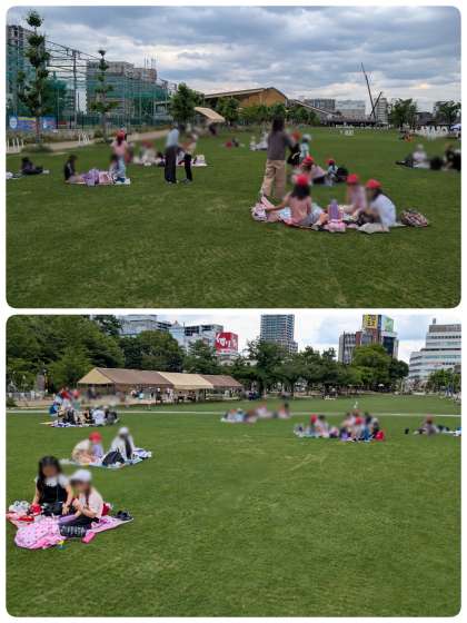見学の後は、てんしばに移動してお昼ご飯をゆっくりと食べました。