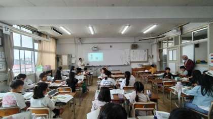 他の学年の先生たちも3年生の教室に集まって授業を参観、放課後には先生たちで授業についての意見を出し合いました。
