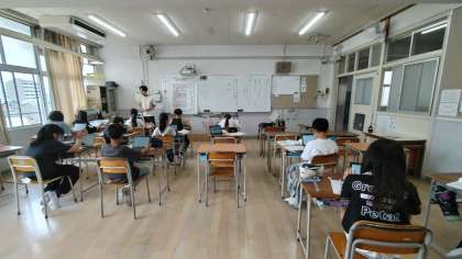 魅力を伝えるための題材を探し、タブレットで詳しく調べてからまとめていきます。