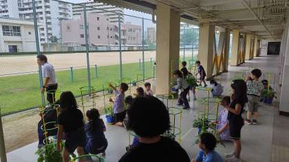 お世話をしているアサガオが随分と育ってきました。