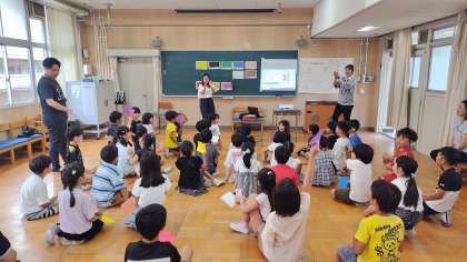 2クラス合同で、外国語活動をしました。