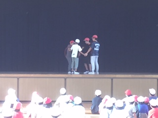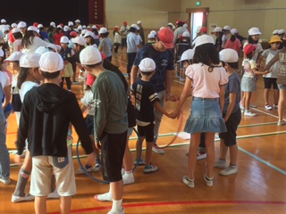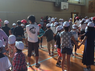 今日の集会活動は、輪送り競争をしました。