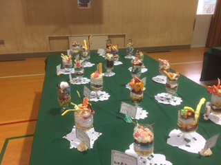 各学年の作品が展示されはじめました。見るからに美味しそうな作品です。
