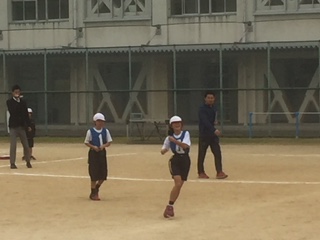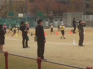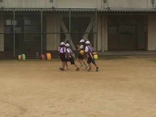 4年2組は、大阪市の体育の先生にタグラグビーの授業を見ていただきました。