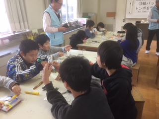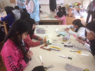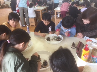 木の実や紙パックで工作をしています。