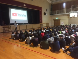 終業式では、生活指導の担当の教員から、タブレットやスマホ、パソコンで動画を見ることについての提案がありました。