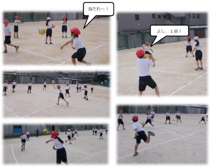 一つのコートでは3人〜4人でプレーするため、みんな休む間もなくドッジボールを楽しんでいました。