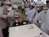 1月30日 家庭科でホットケーキを作りました。フライパンでひっくりかえし両面を焼...